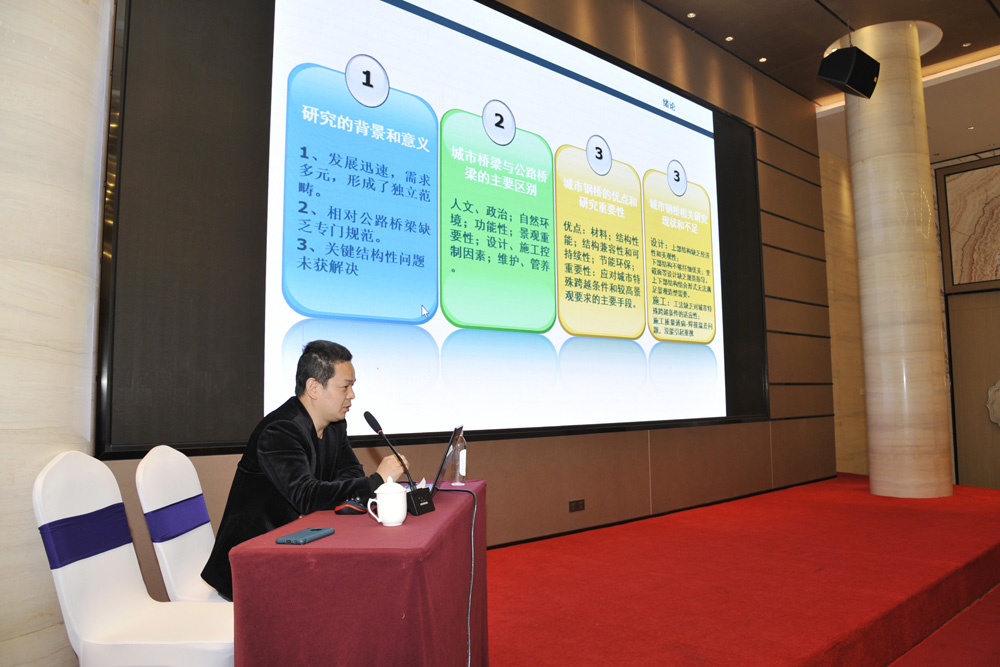《城市鋼橋景觀設計與施工關鍵技術研究》項目負責人龍剛在大會上作了主題發言,圍繞當代城市鋼橋在設計與施工過程中經常遇到和必須解決的一些關鍵結構性問題,對行業共同關注的熱點進行了交流和研討,引起了與會專家和代表們的高度關注,為西安市政院在行業內樹立積極的品牌形象起了強化作用。