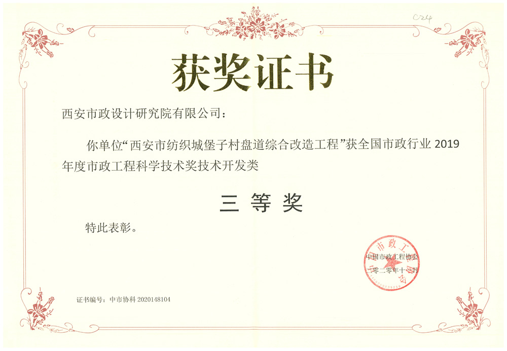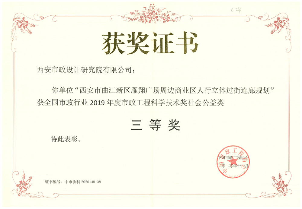 近日,全國市政行業2019年度市政工程科學技術獎表彰大會在廣西南寧順利召開,我公司共計4項科研項目獲獎,其中“城市鋼橋景觀設計與施工關鍵技術研究”喜獲技術開發類一等獎,“西安市紡織城堡子村盤道綜合改造工程”、“關中地區市政道路海綿城市建設技術標準圖集”獲技術開發類三等獎,“西安市曲江新區雁翔廣場周邊商業區人行立體過街連廊規劃”獲社會公益類三等獎。