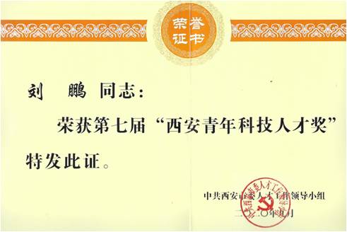 科技創(chuàng)新人才先行——我公司劉鵬同志榮獲“第七屆西安青年科技人才獎” 近日,由西安市委組織部、市人社局、市科協(xié)組織開展的第七屆西安青年科技人才獎評選表彰活動落下帷幕,9月25日上午,市科協(xié)舉辦了西安市第十七屆學(xué)術(shù)金秋活動主場報告會暨第七屆青年科技人才獎頒獎典禮,我公司劉鵬同志喜獲“第七屆西安青年科技人才獎”。