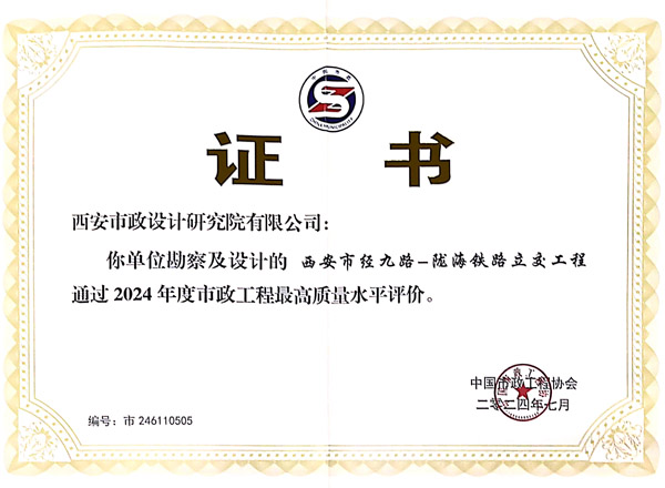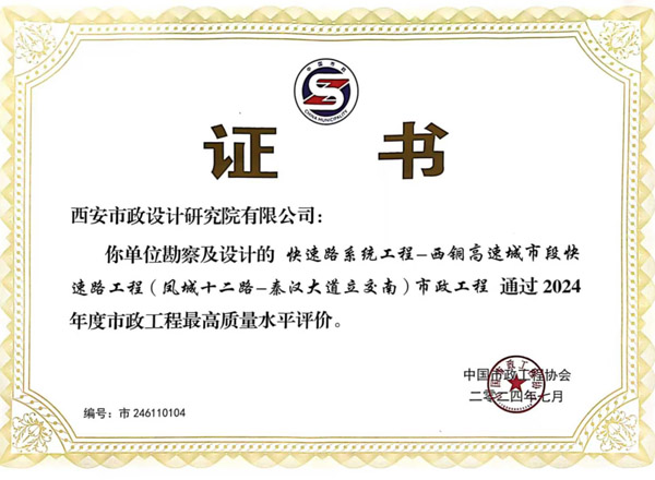 日前,根據(jù)中國市政工程協(xié)會(huì)發(fā)布的“2024年度通過市政工程最高質(zhì)量水平評價(jià)工程名單”,我公司承擔(dān)設(shè)計(jì)的“西安國際港務(wù)區(qū)杏渭路道路和配套管線工程施工項(xiàng)目2標(biāo)段”、“快速路系統(tǒng)工程-西銅高速城市段快速路工程(鳳城十二路-秦漢大道立交南)市政工程”、“西安市經(jīng)九路-隴海鐵路立交工程”獲此殊榮。