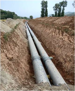 該工程供熱管線總長度23.4km,供熱管道最大管徑D720×10mm。設(shè)計(jì)采用了國內(nèi)領(lǐng)先的無補(bǔ)償冷安裝直埋敷設(shè)技術(shù),是目前全國首例跨省輸送的集中供熱工程,也是全國范圍內(nèi)輸送距離最長的集中供熱工程之一。