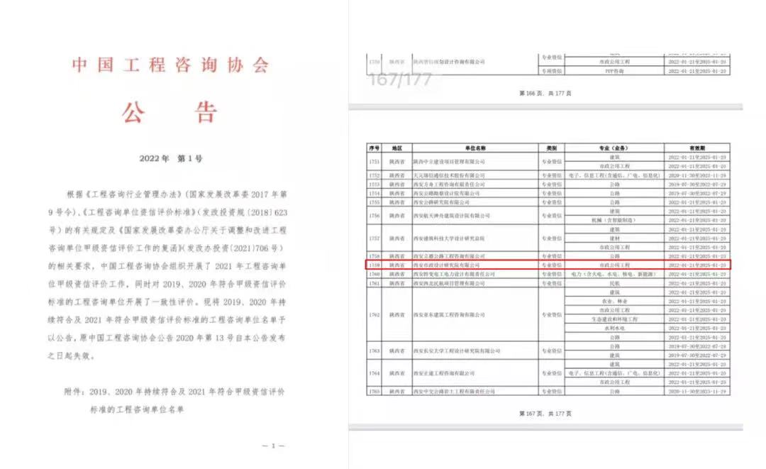 近日,根據(jù)中國工程咨詢協(xié)會發(fā)布的公告,我公司通過了中國工程咨詢協(xié)會的嚴(yán)格審查,順利取得工程咨詢甲級資信(市政公用工程)延續(xù)資格。