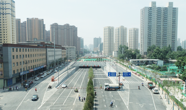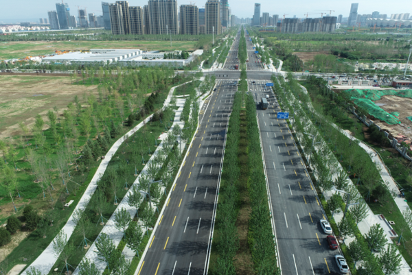 道路橫斷面設(shè)計(jì)統(tǒng)籌考慮機(jī)動(dòng)車、非機(jī)動(dòng)車和行人的交通需求,以及同期建設(shè)330kv高壓管廊布設(shè)要求,設(shè)置15m寬中央分隔帶,既滿足了基礎(chǔ)設(shè)施的設(shè)置需求,又提升了道路景觀效果。道路全線設(shè)置自行車專用道,交叉口設(shè)置導(dǎo)流島,合理進(jìn)行機(jī)非分離,實(shí)現(xiàn)交通安全有序。配套市政管線精細(xì)化處理管線交叉,并按照“減量化、隱形化、景觀化”原則進(jìn)行管線設(shè)施布局,盡量避開車行道敷設(shè),保證道路行車的舒適性;采用隱形鋪裝井框蓋、鋼格柵雨水口,提升道路景觀效果;管溝外露部分構(gòu)筑物與周圍環(huán)境和諧統(tǒng)一。該項(xiàng)目建設(shè)為進(jìn)一步加強(qiáng)區(qū)域間互聯(lián)互通,補(bǔ)齊城市功能和公共服務(wù)短板提供了堅(jiān)實(shí)有力的交通保障。