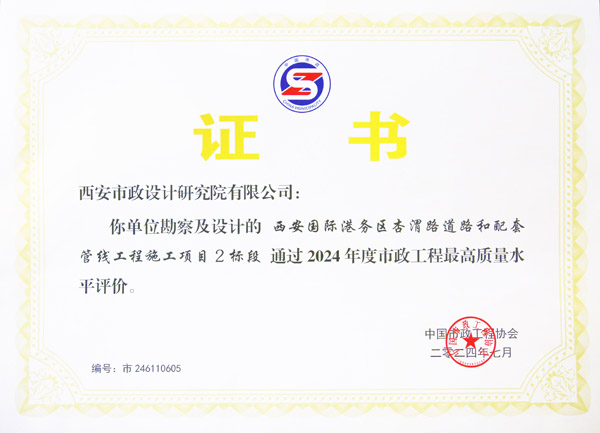 日前,根據(jù)中國市政工程協(xié)會(huì)發(fā)布的“2024年度通過市政工程最高質(zhì)量水平評價(jià)工程名單”,我公司承擔(dān)設(shè)計(jì)的“西安國際港務(wù)區(qū)杏渭路道路和配套管線工程施工項(xiàng)目2標(biāo)段”、“快速路系統(tǒng)工程-西銅高速城市段快速路工程(鳳城十二路-秦漢大道立交南)市政工程”、“西安市經(jīng)九路-隴海鐵路立交工程”獲此殊榮。